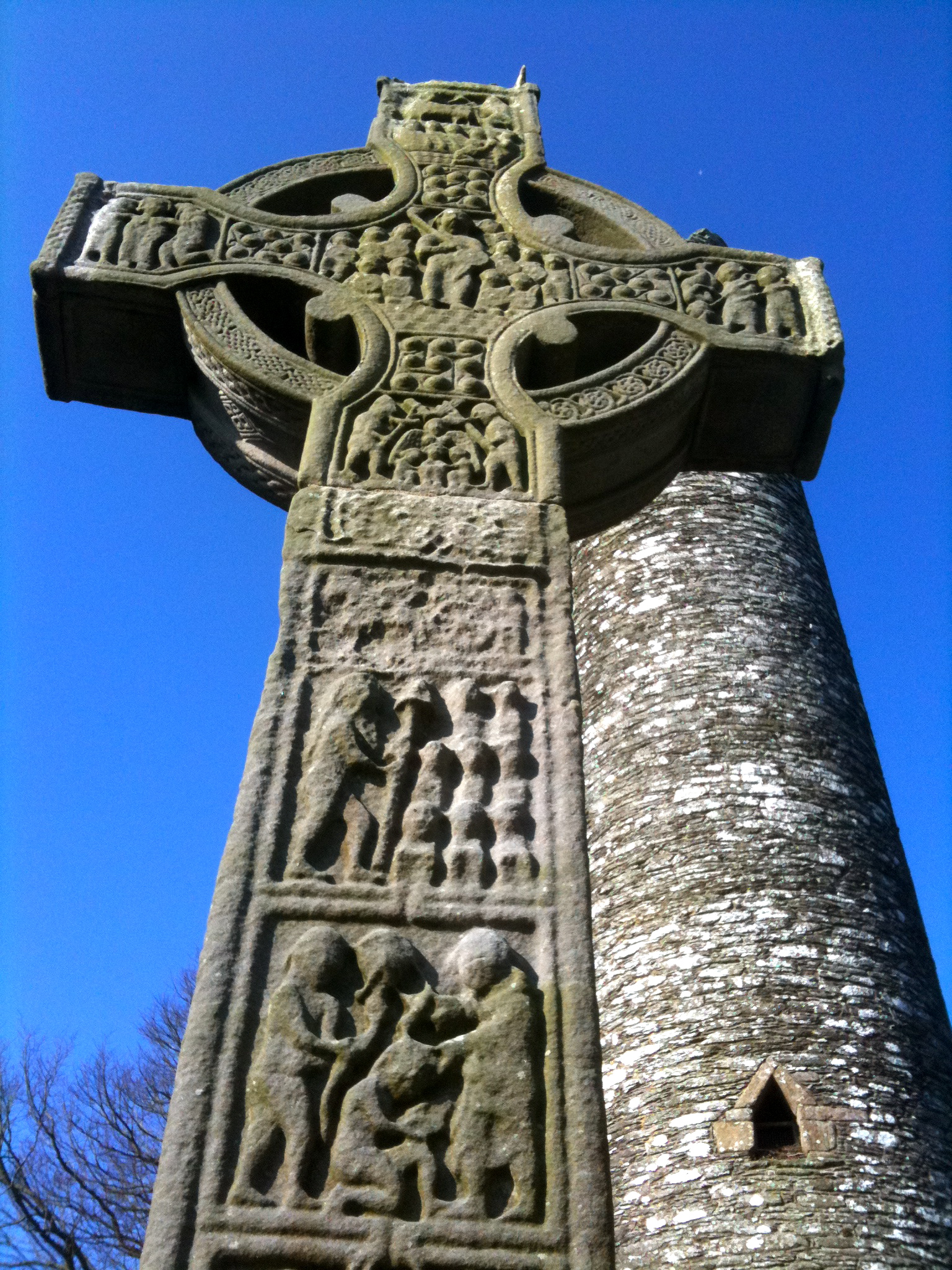 We left Dublin today and headed north to Monasterboice, a monastic village founded in the sixth century by a disciple of Saint Patrick. In its time is was center a of learning and the monastery was the hub of a village of two to three thousand people. Not much remains today except the best preserved carved “high crosses” in Ireland. They were the illustrated bible for a population that could not read but still needed to learn the great stories of scripture. We met a wonderful Irish guide named John who helped the whole thing come alive for us. We also toured Newgrange, the oldest tomb sight in Ireland dating back at least 5000 years. We were surprised to see images carved by those ancient people included in the “high crosses” of a much later time. The early Christians weren’t afraid to incorporate the art of their time to tell the gospel story. Tonight we are staying at a beautiful B&B by the Irish Sea!
